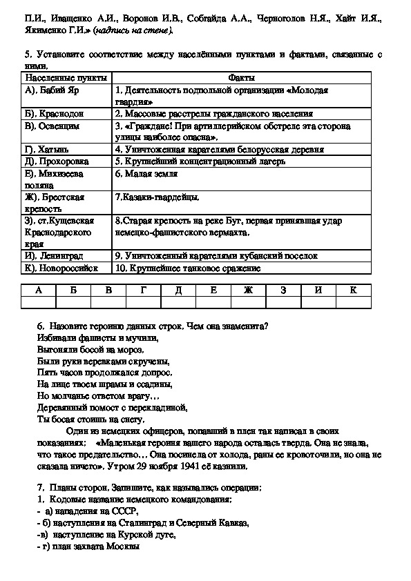 4. Определите, о каких эпизодах войны идет речь в отрывках из документов, и на
