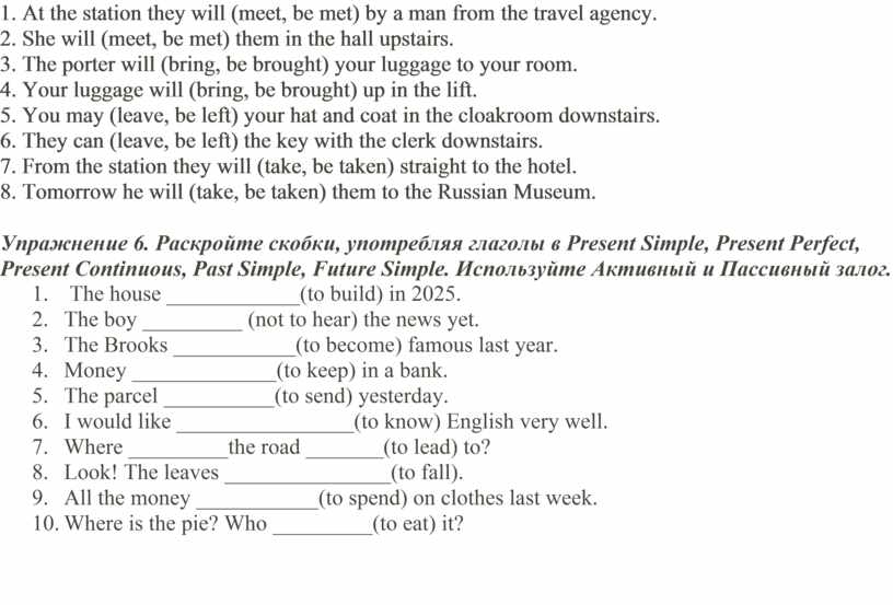 Упражнение 6. Раскройте скобки, употребляя глаголы в Present Simple, Present Perfect, Present Continuous, Past Simple, Future Simple. Используйте Активный и Пассивный залог.