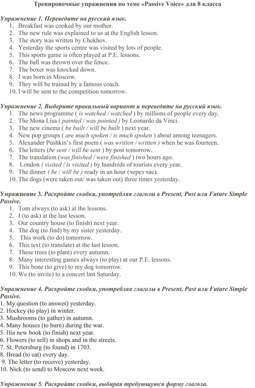 Тренировочные упражнения по теме «Passive Voice» для 8 класса