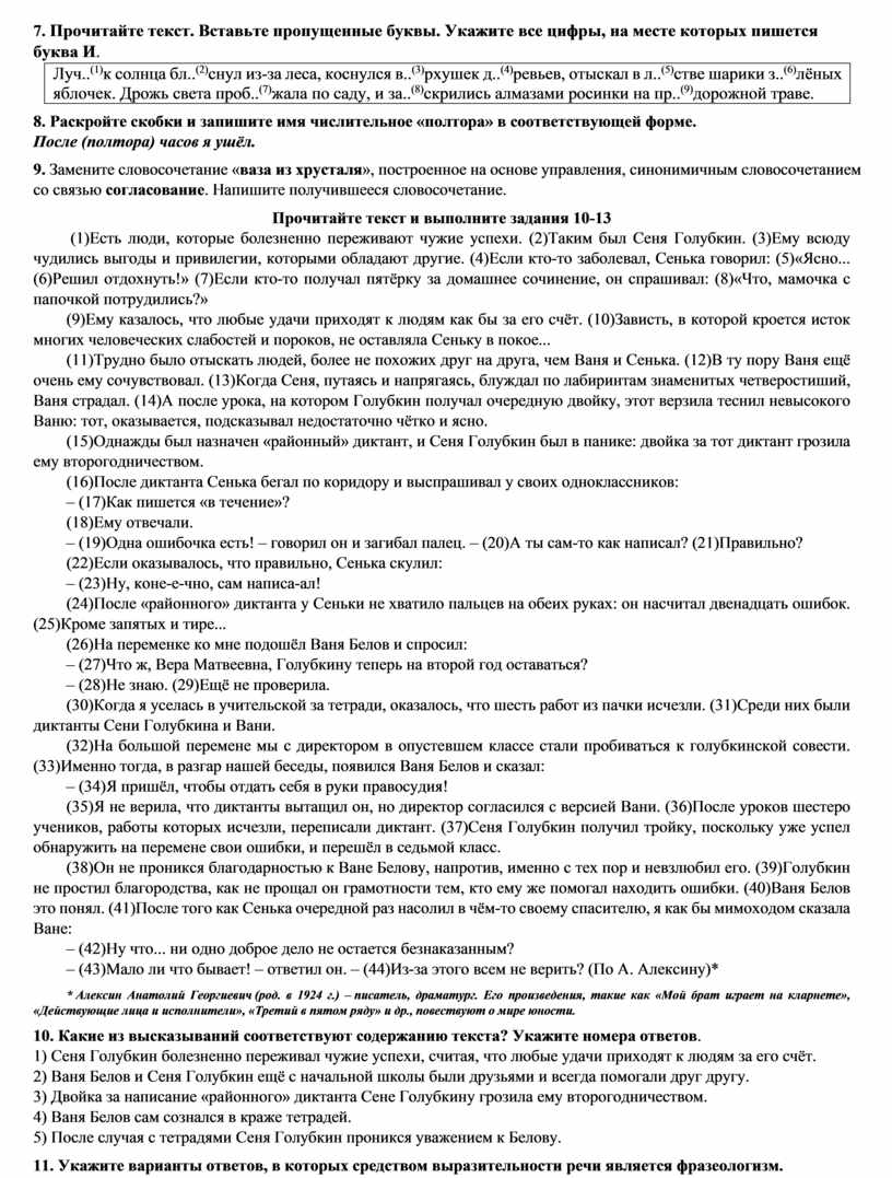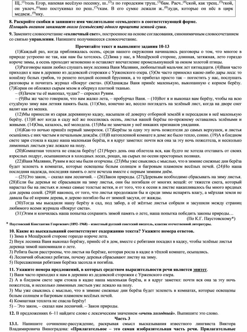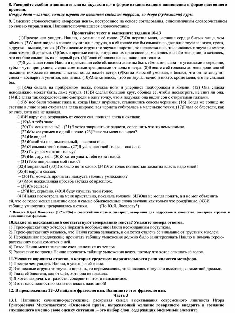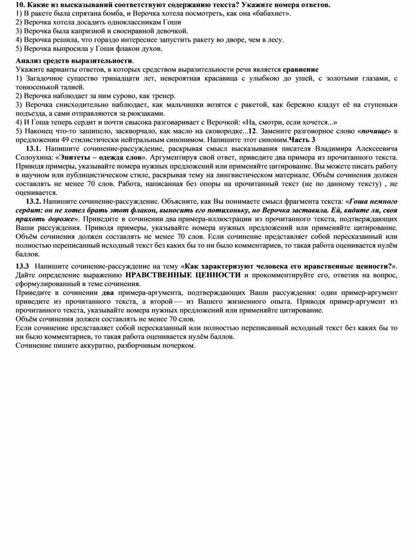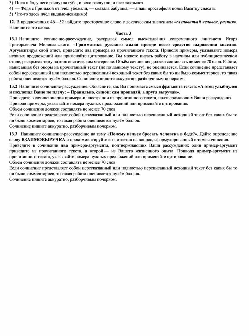 13.1 Напишите сочинение-рассуждение, раскрывая смысл высказывания современного лингвиста Игоря Григорьевича Милославского: «Грамматика русского языка прежде всего средство выражения мысли». Аргументируя свой ответ, приведите два примера из прочитанного текста. Приводя примеры, указывайте номера нужных предложений или применяйте цитирование. Вы можете писать работу в научном или публицистическом стиле, раскрывая тему на лингвистическом материале. Объём сочинения должен составлять не менее 70 слов. Работа, написанная без опоры на прочитанный текст (не по данному тексту), не оценивается. Если сочинение представляет собой пересказанный или полностью переписанный исходный текст без каких бы то ни было комментариев, то такая работа оценивается нулём баллов. Сочинение пишите аккуратно, разборчивым почерком.