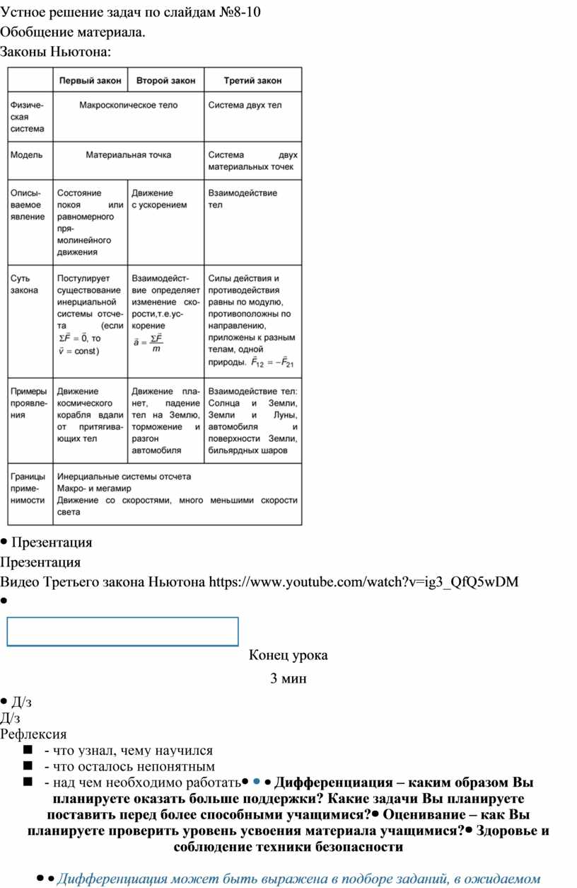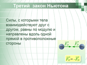 понимает формулировку третьего закона Ньютона объясняет на примерах третий закон Ньютона решает задачи на законы Ньютона |
