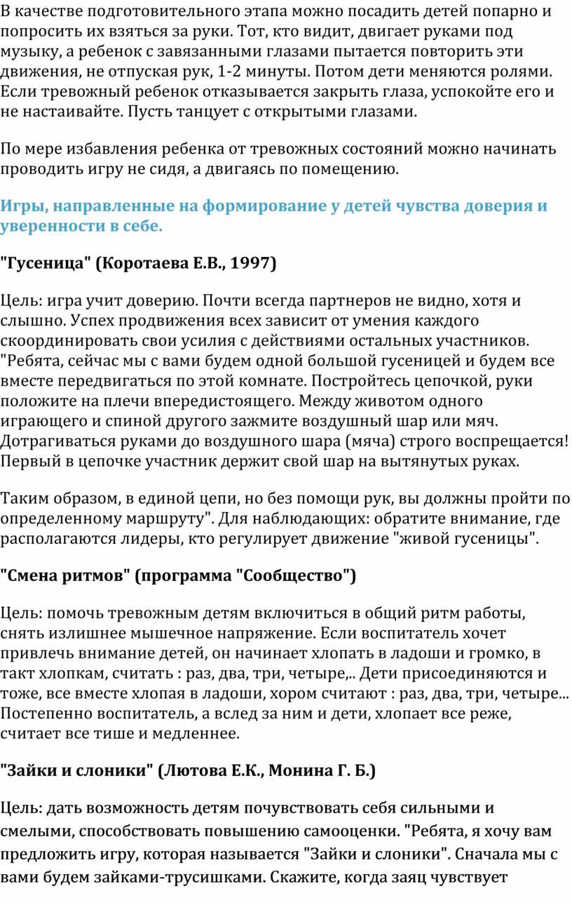 Игры, направленные на формирование у детей чувства доверия и уверенности в себе.