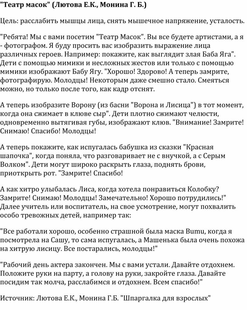 "Театр масок" (Лютова Е.К., Монина Г. Б.)