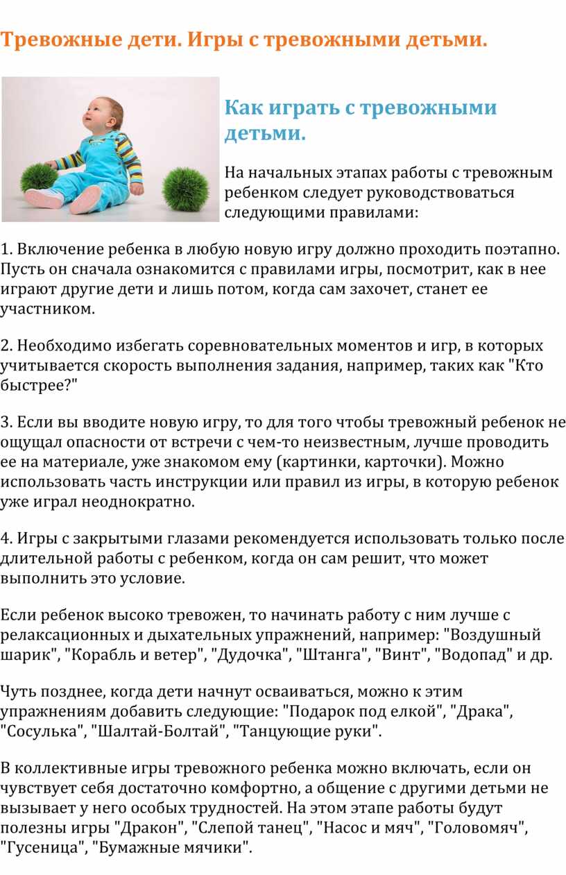 Тревожные дети. Игры с тревожными детьми.