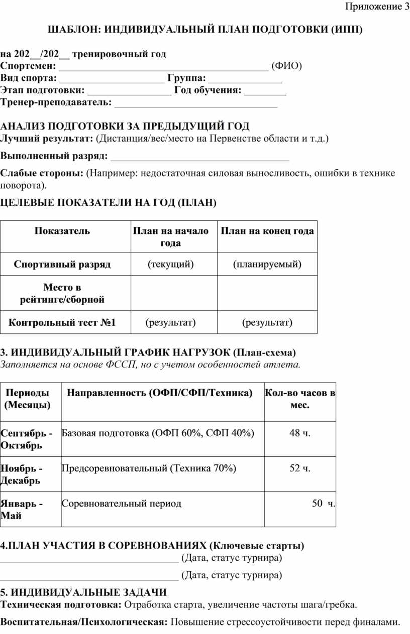 Заполняется на основе ФССП, но с учетом особенностей атлета.