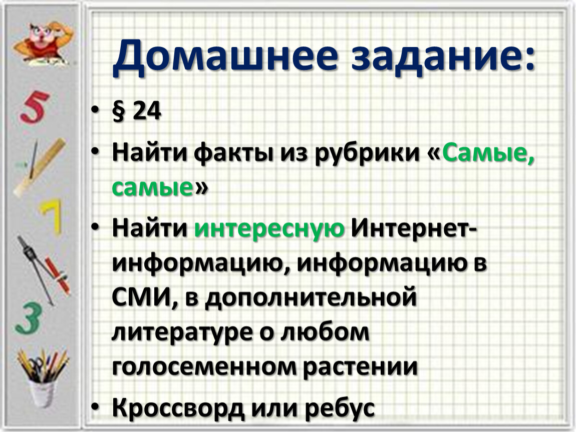 Найти интересную Интернет-информацию, информацию в СМИ, в дополнительной литературе о любом голосеменном растении