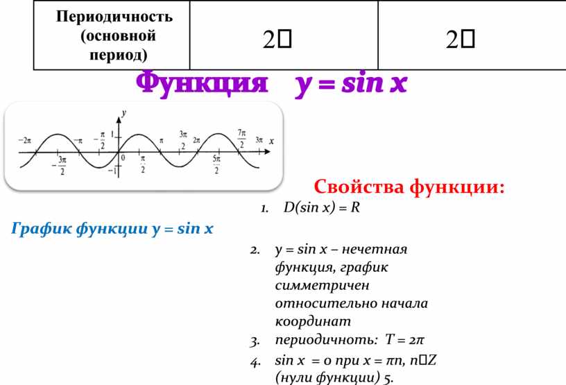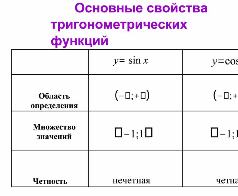 Основные свойства тригонометрических функций