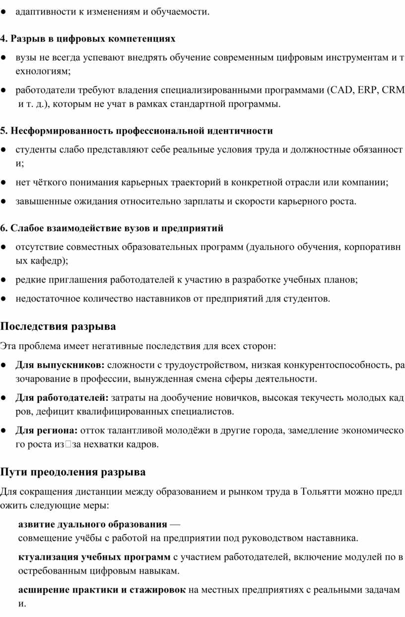 Для сокращения дистанции между образованием и рынком труда в Тольятти можно предложить следующие меры: