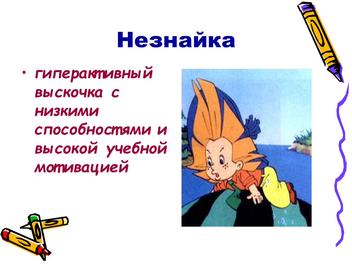 активная девочка, выдумщица и фантазёрка с низкой учебной мотивацией и организатор-скими способностями