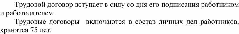 Трудовой договор вступает в силу со дня его подписания работником и работодателем.