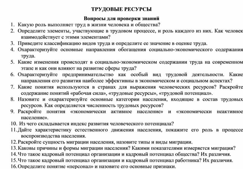 7. Какие понятия используются в странах для выражения человеческих ресурсов? Раскройте содержание понятий «рабочая сила», «трудовые ресурсы», «трудовой потенциал».