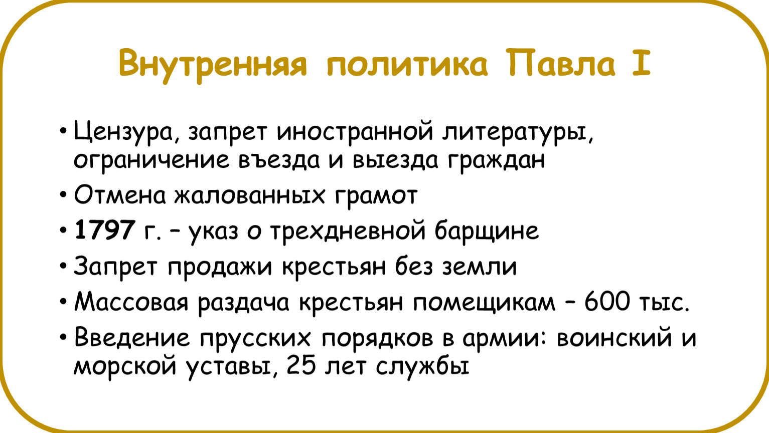 Внутренняя политика Павла I