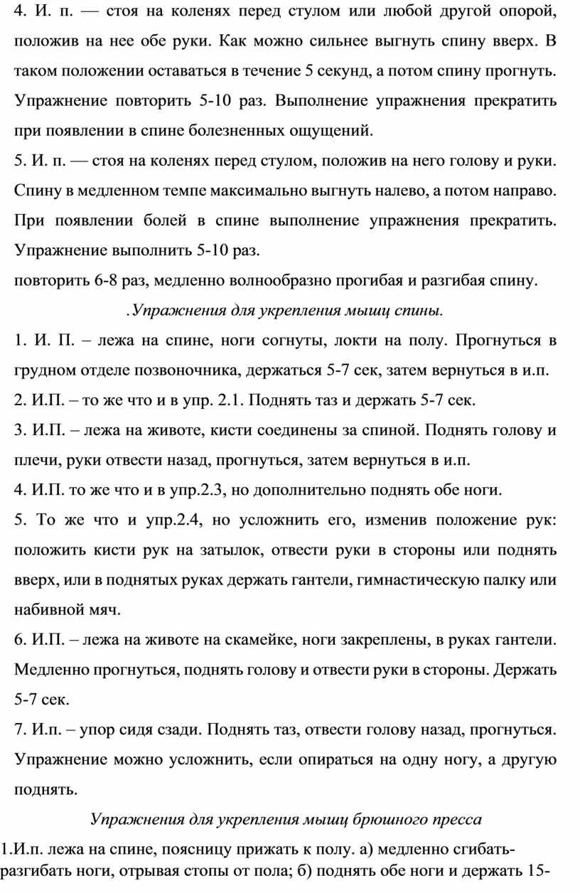 .Упражнения для укрепления мышц спины.