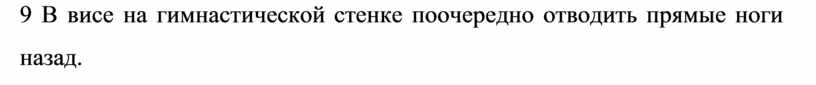 9 В висе на гимнастической стенке поочередно отводить прямые ноги назад.