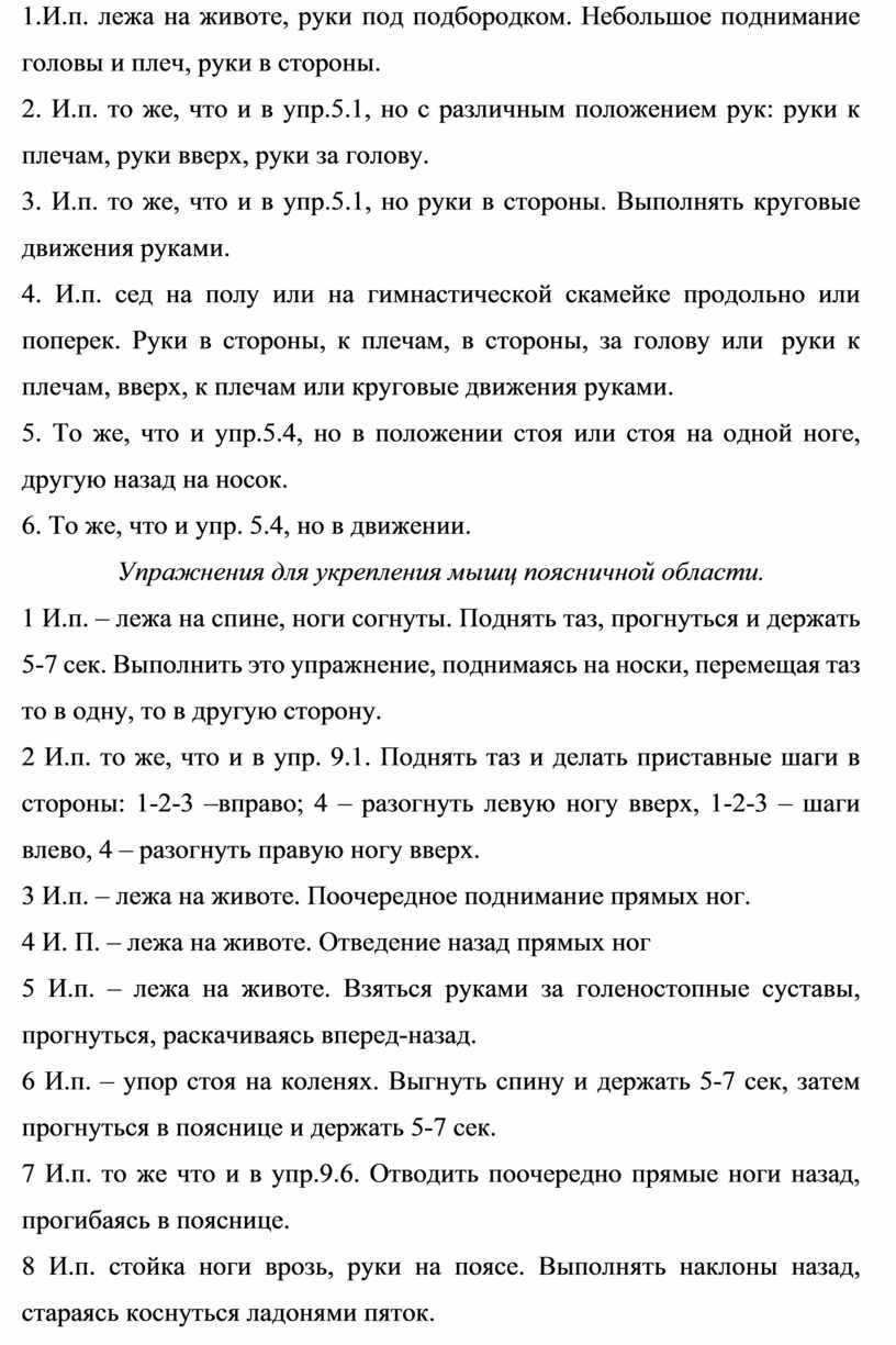 Упражнения для укрепления мышц поясничной области.