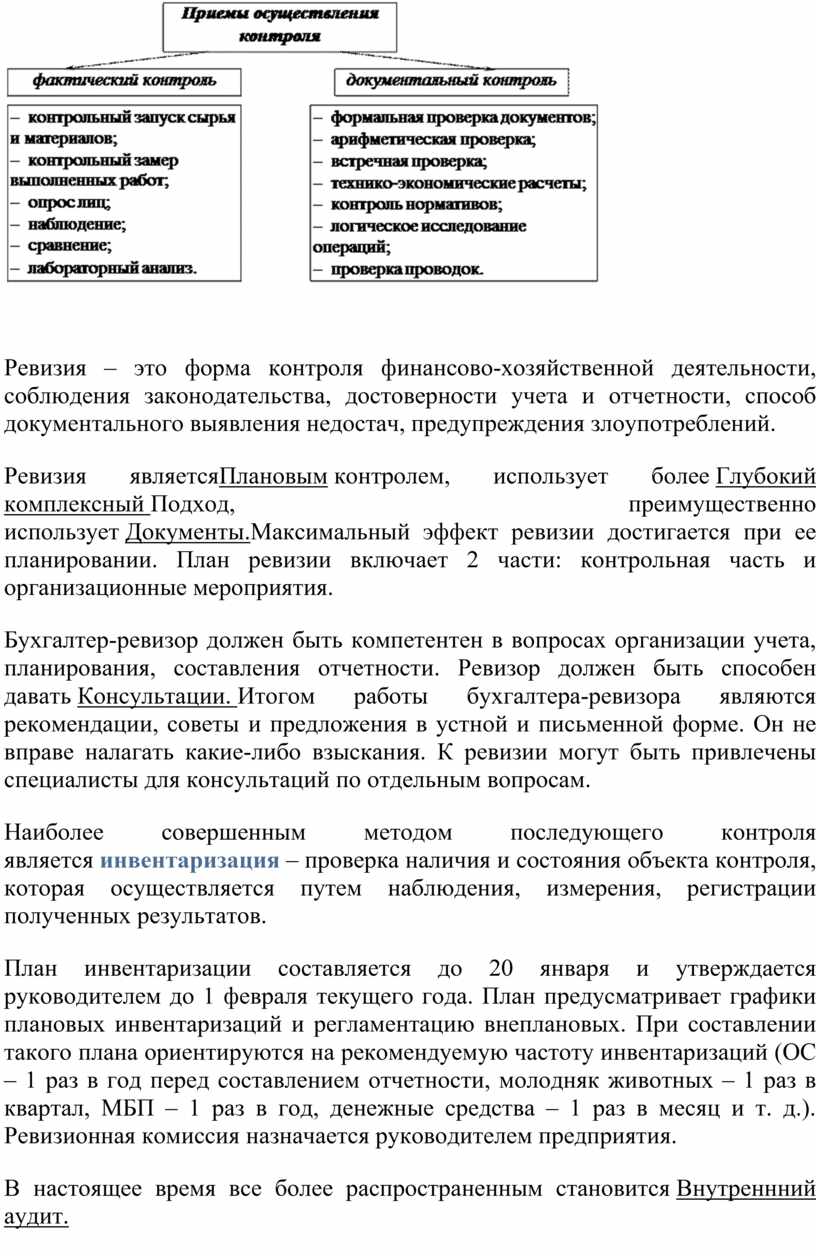 Цель, задачи, порядок осуществления бухгалтерского контроля на предприятии.