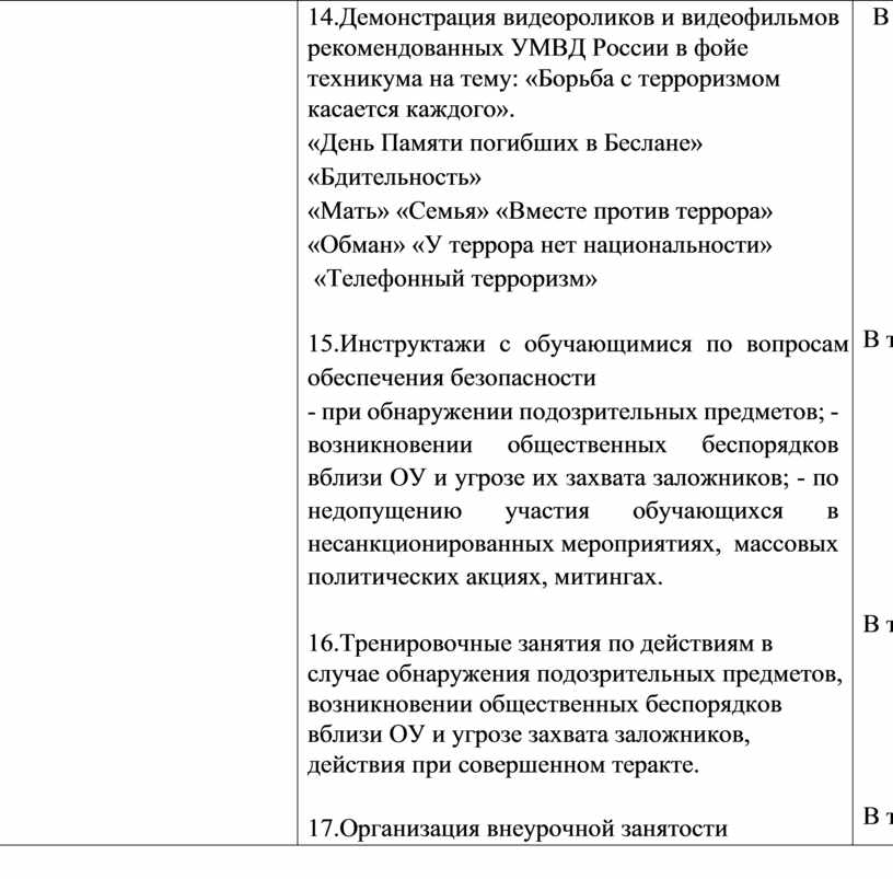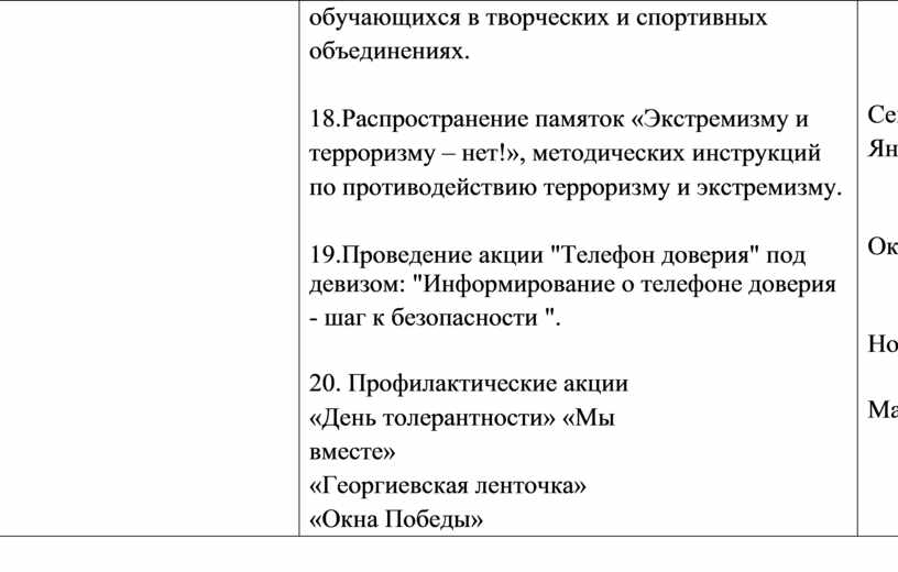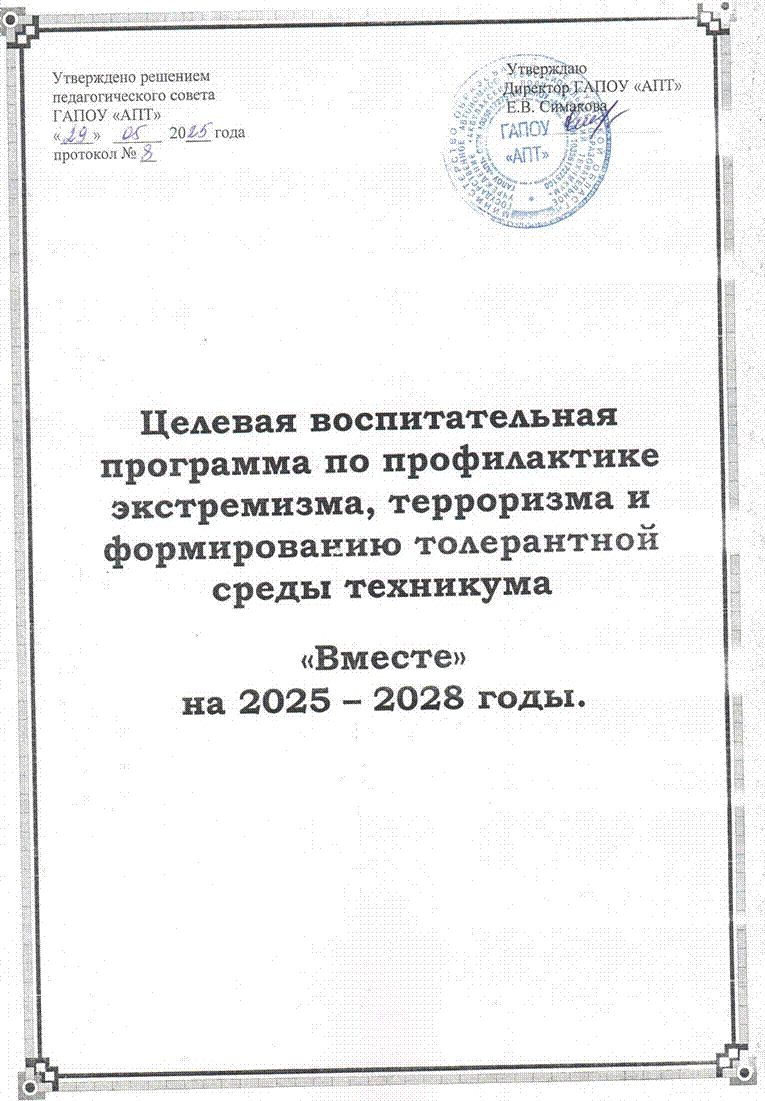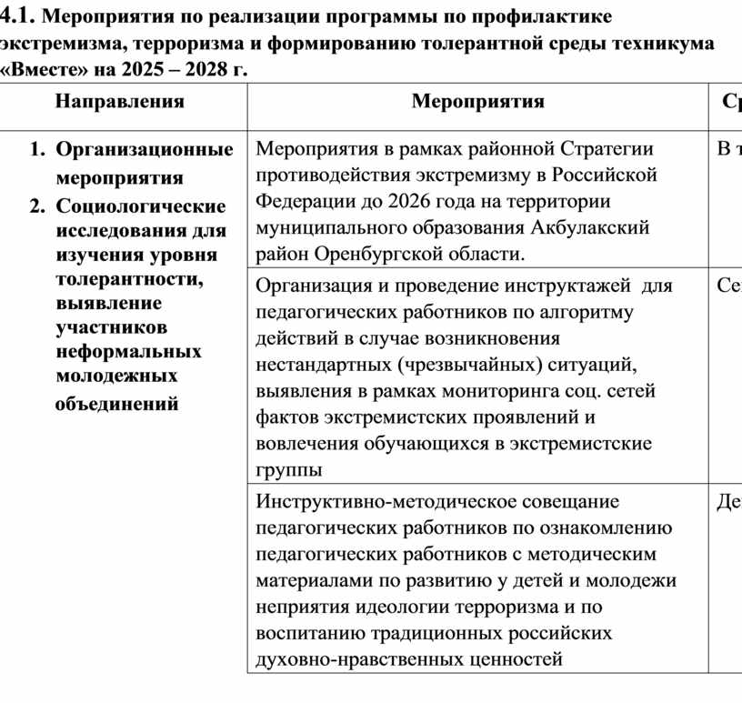 4.1. Мероприятия по реализации программы по профилактике экстремизма, терроризма и формированию толерантной среды техникума «Вместе» на 2025 – 2028 г.