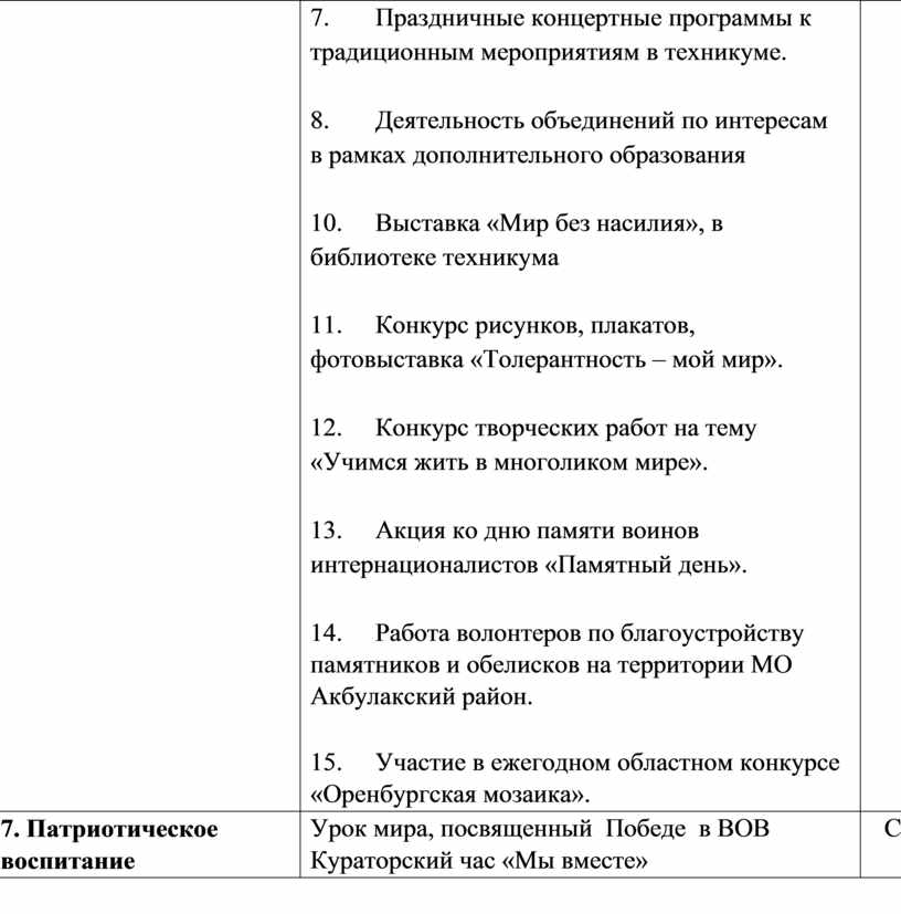 7. Патриотическое воспитание |