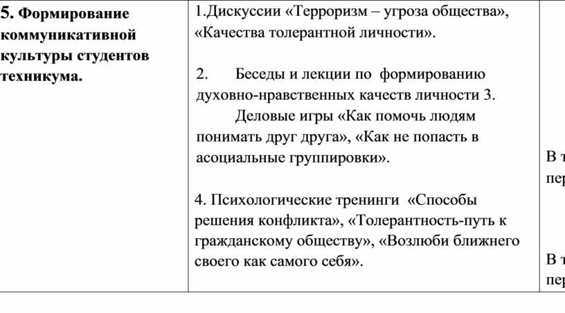 • 4. Формирование коммуникативной культуры студентов техникума.