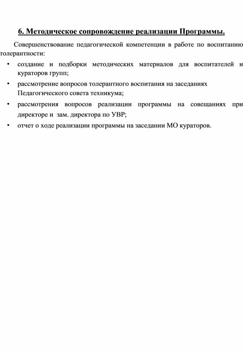 6. Методическое сопровождение реализации Программы.
