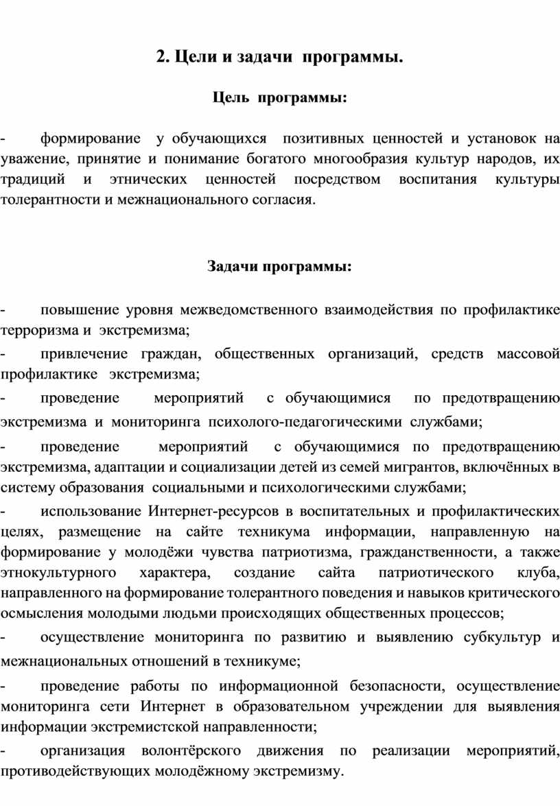 1. Создание эффективной системы правовых, организационных и идеологических механизмов противодействия экстремизму, этнической и религиозной нетерпимости.