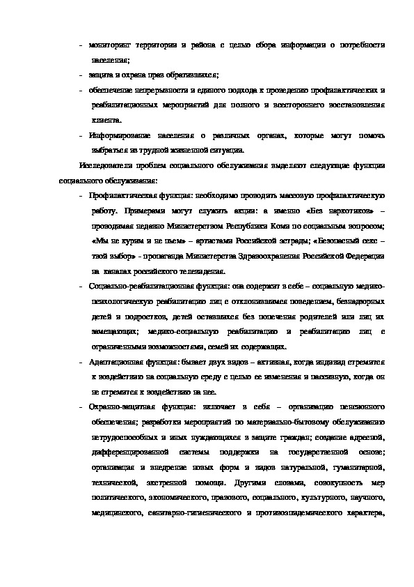 необходимые принципы работы социальных служб. Но все же цели, задачи, функции