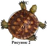 3. Панцирь черепахи имеет круглую форму. Найдите угол между лапами С и В, если известно, что расстояние между лапами В-С и С-А одинаковое и угол ВСА равен 900. 4. Отрезки АВ и СD – диаметры окружности с центром О. Найдите периметр треугольника АОD, если СВ = 13 см, АВ = 16 см. Дополнительное задание