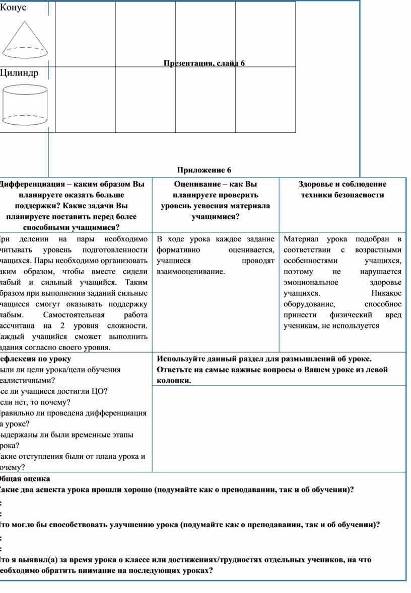 Общая оценка Какие два аспекта урока прошли хорошо (подумайте как о преподавании, так и об обучении)? 1: 2: Что могло бы способствовать улучшению урока (подумайте как о преподавании, так и об обучении)? 1: 2: Что я выявил(а) за время урока о классе или достижениях/трудностях отдельных учеников, на что необходимо обратить внимание на последующих уроках? |