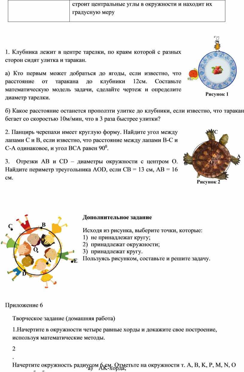 а) Кто первым может добраться до ягоды, если известно, что расстояние от таракана до клубники 12см. Составьте математическую модель задачи, сделайте чертеж и определите диаметр тарелки.