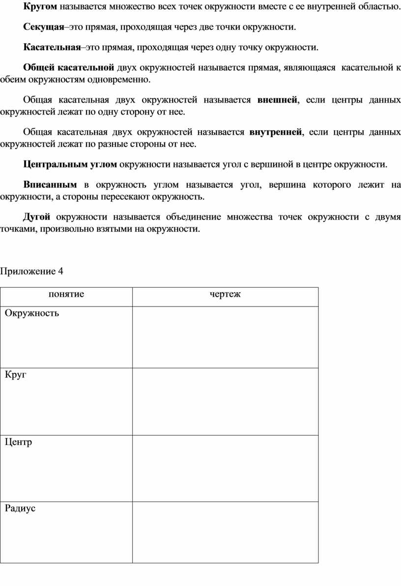 Кругом называется множество всех точек окружности вместе с ее внутренней областью.