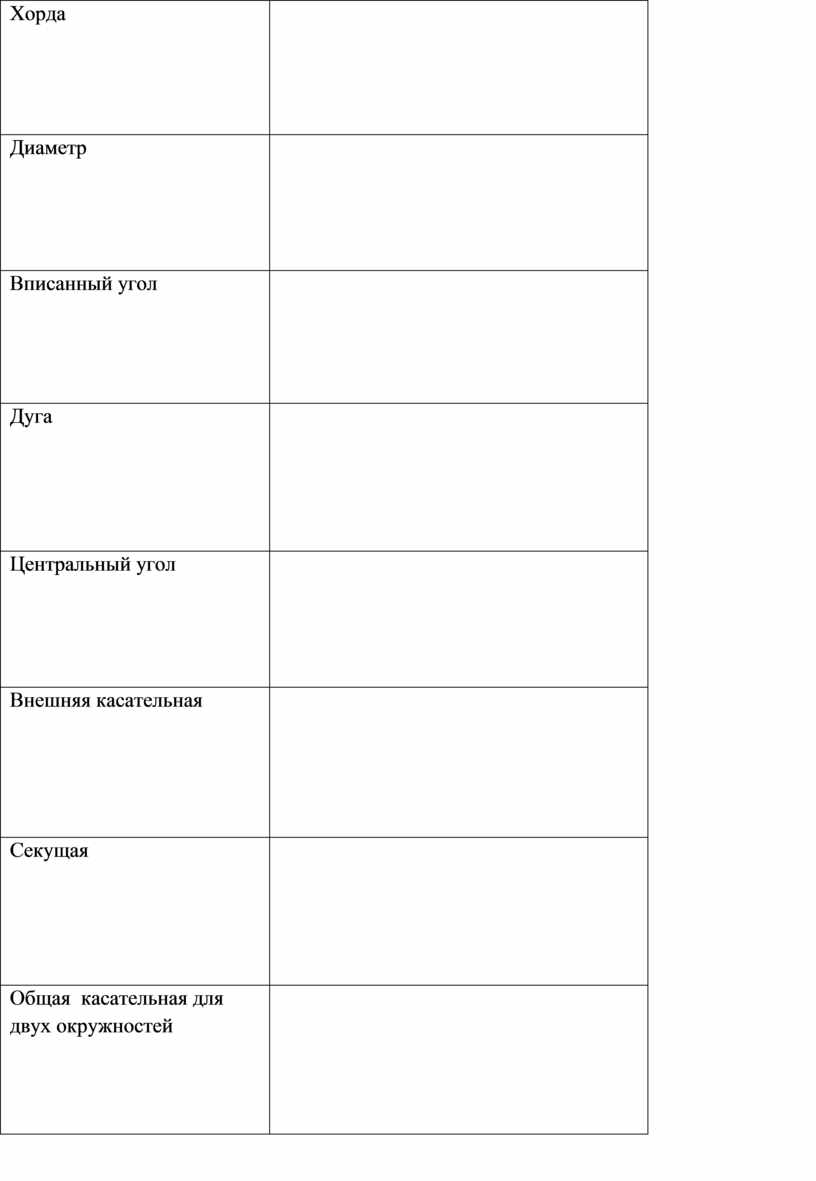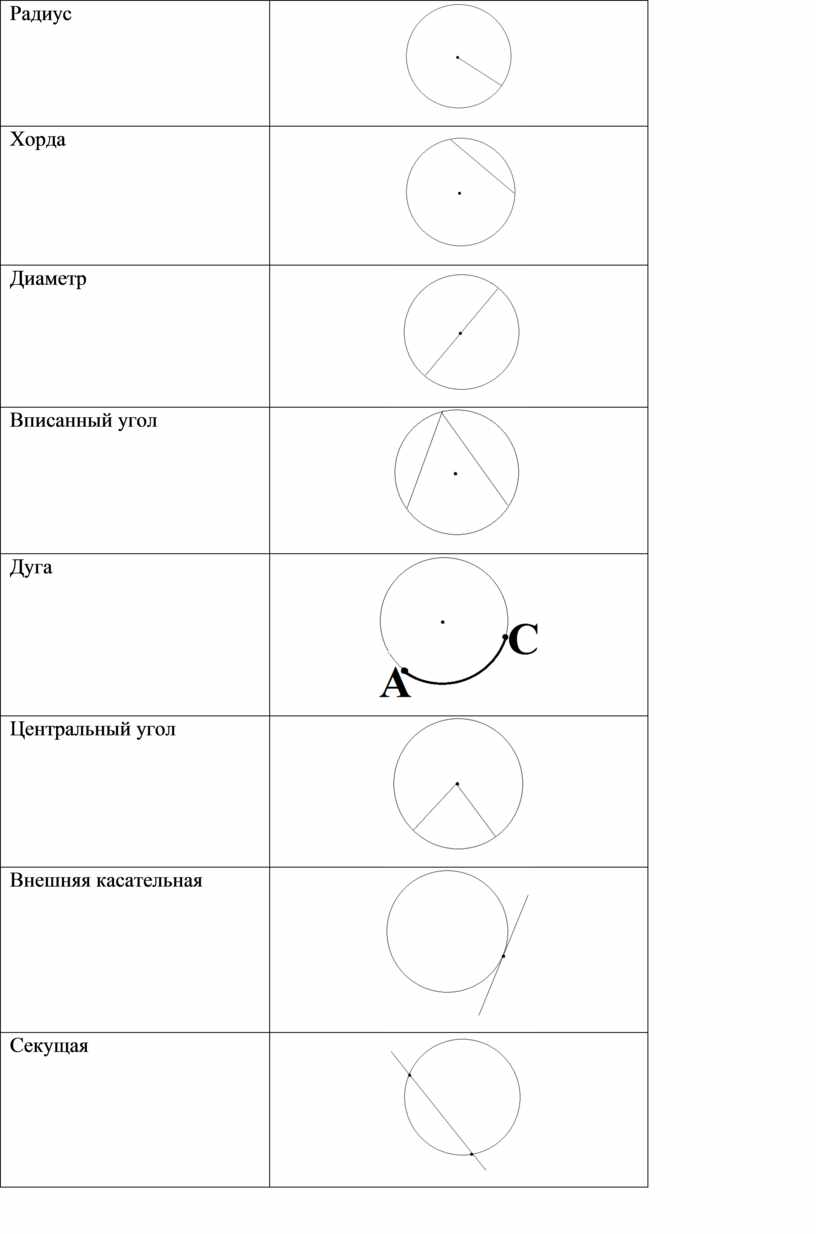 знает определение хорды, касательной и секущей |