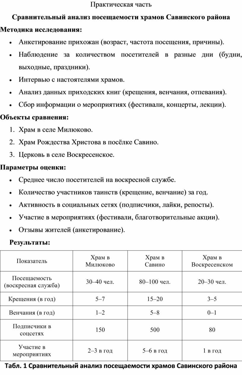 Табл. 1 Сравнительный анализ посещаемости храмов Савинского района