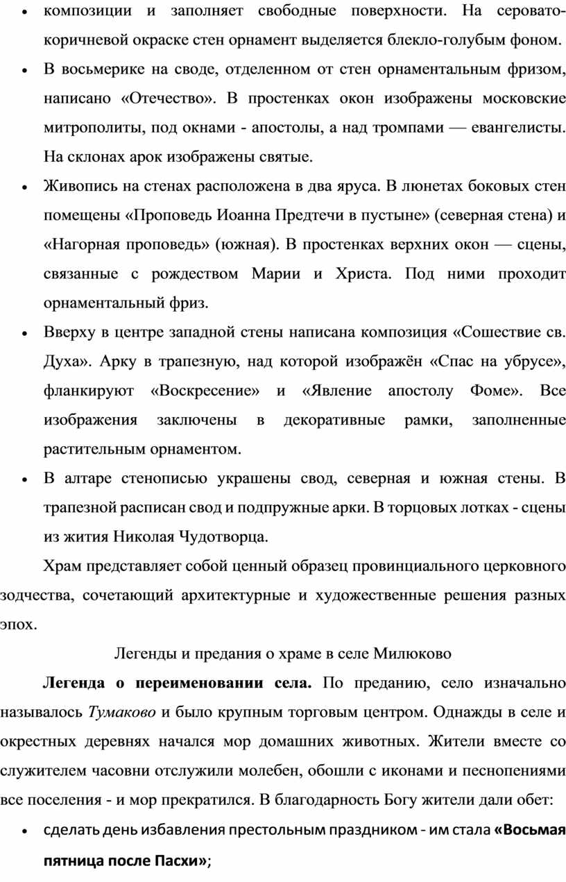 Легенды и предания о храме в селе Милюково ……………………………… 9