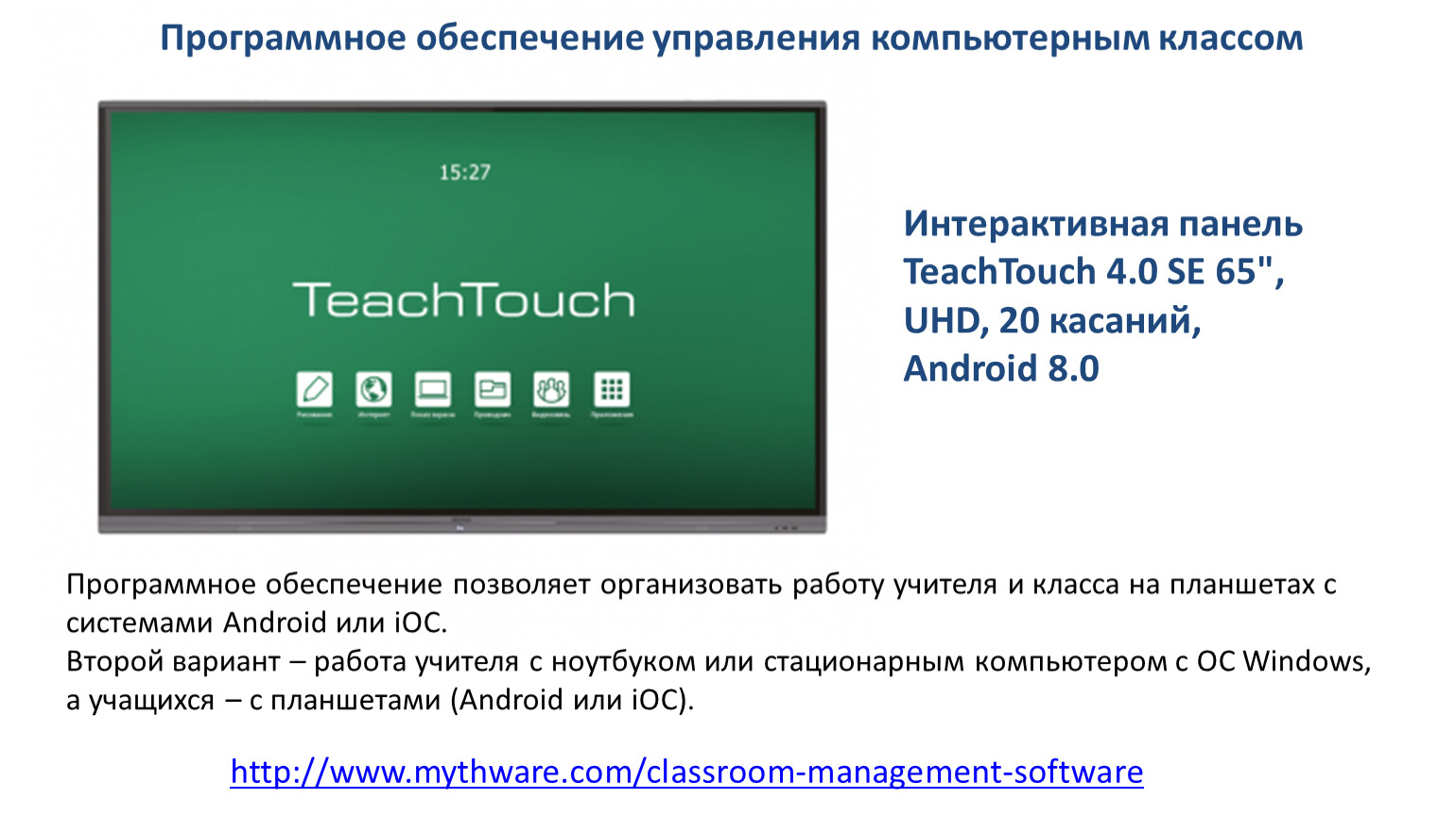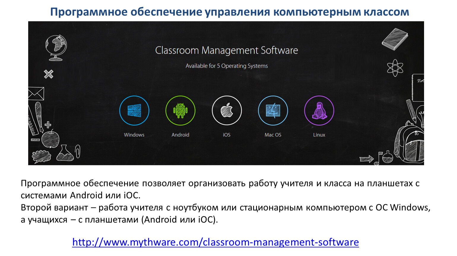 Программное обеспечение позволяет организовать работу учителя и класса на планшетах с системами Android или iOC.