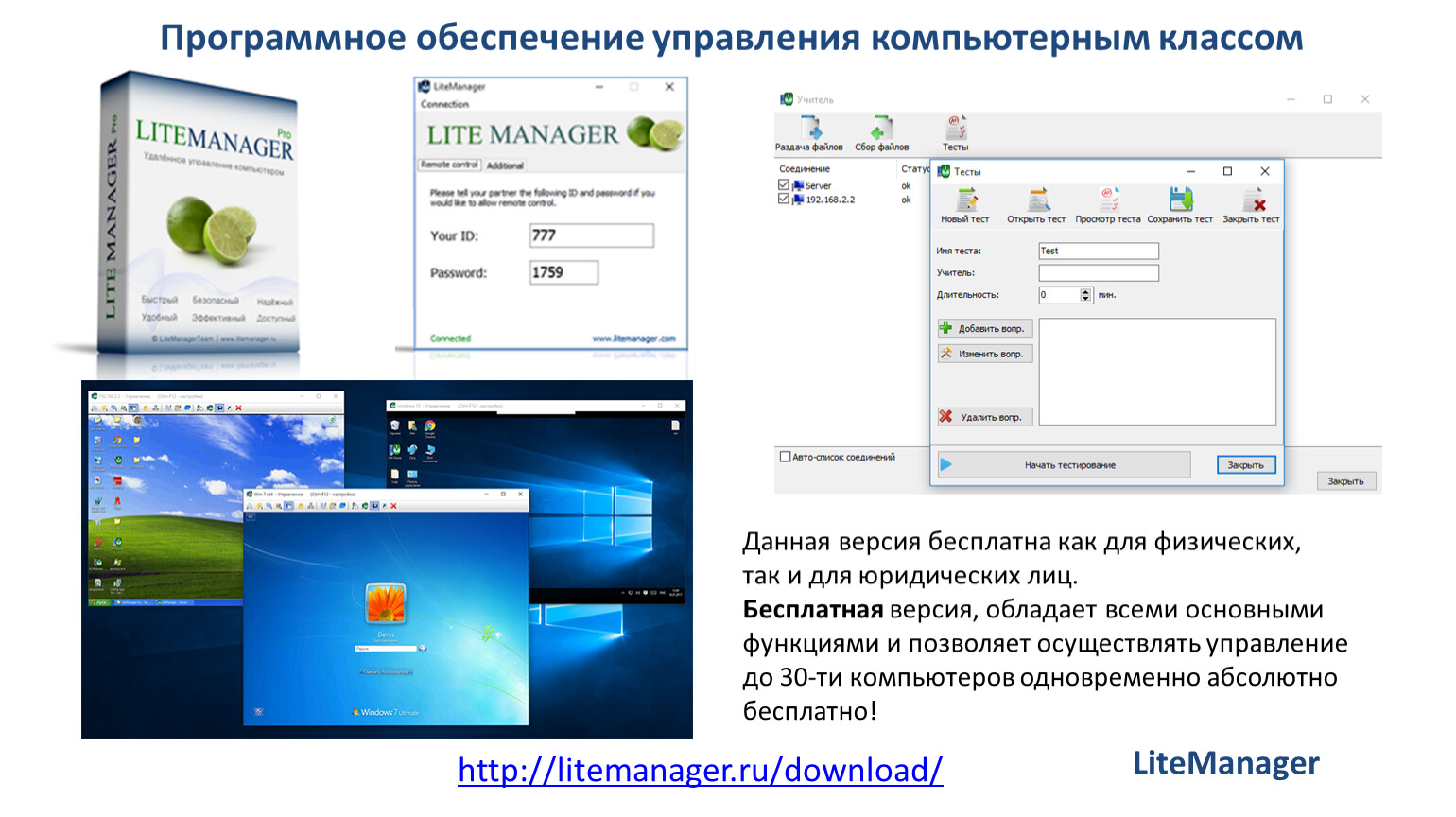 Veyon - программа бесплатная, но функционал при этом достаточно широкий для контроля действий учеников и демонстрации им материалов учителем.