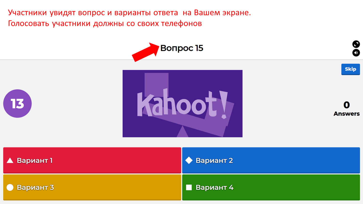 Участники увидят вопрос и варианты ответа на Вашем экране.