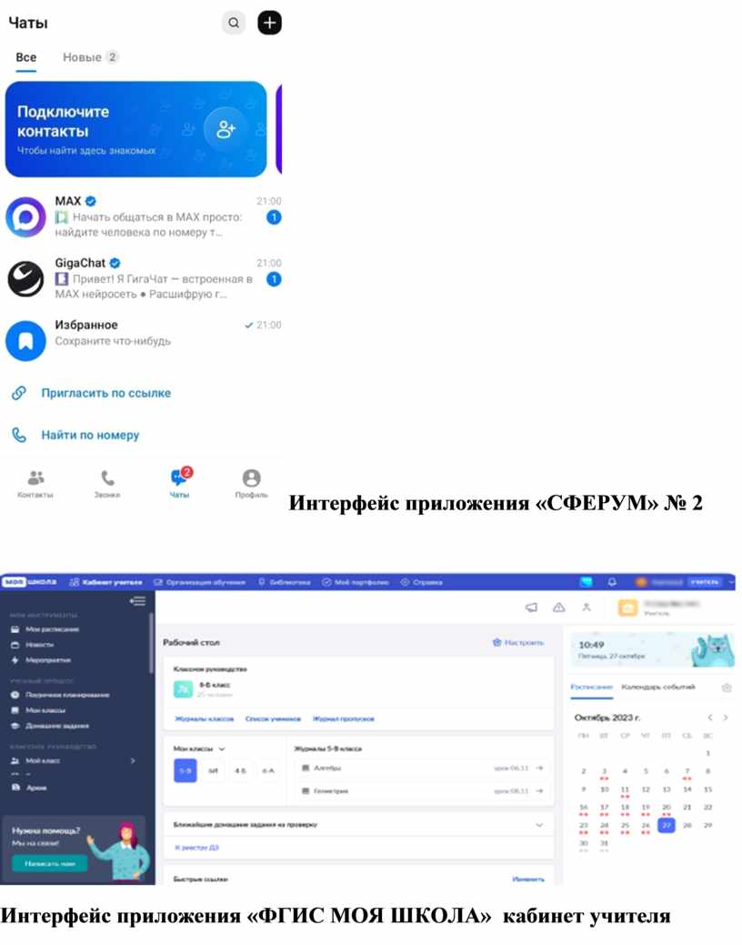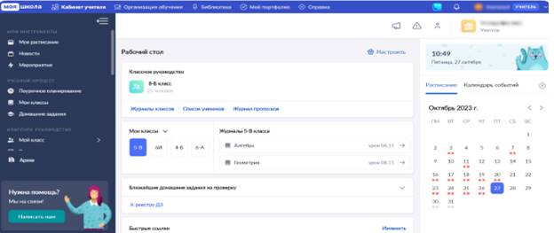 Интерфейс приложения «ФГИС МОЯ ШКОЛА» кабинет учителя