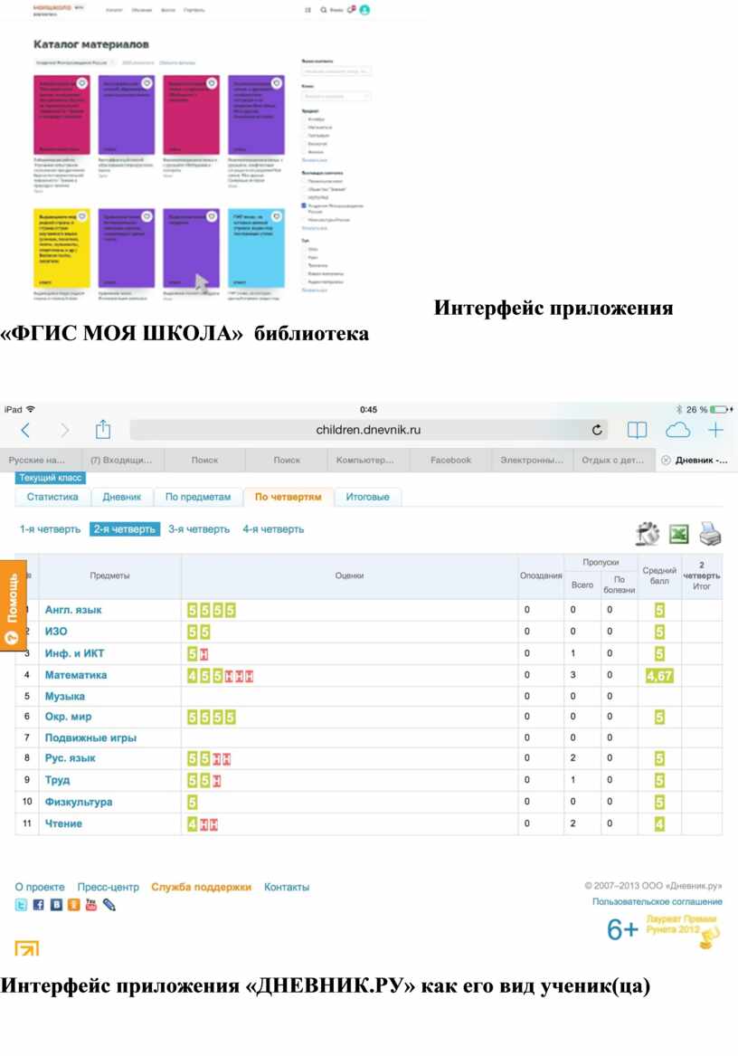 Интерфейс приложения «ДНЕВНИК.РУ» как его вид ученик(ца)