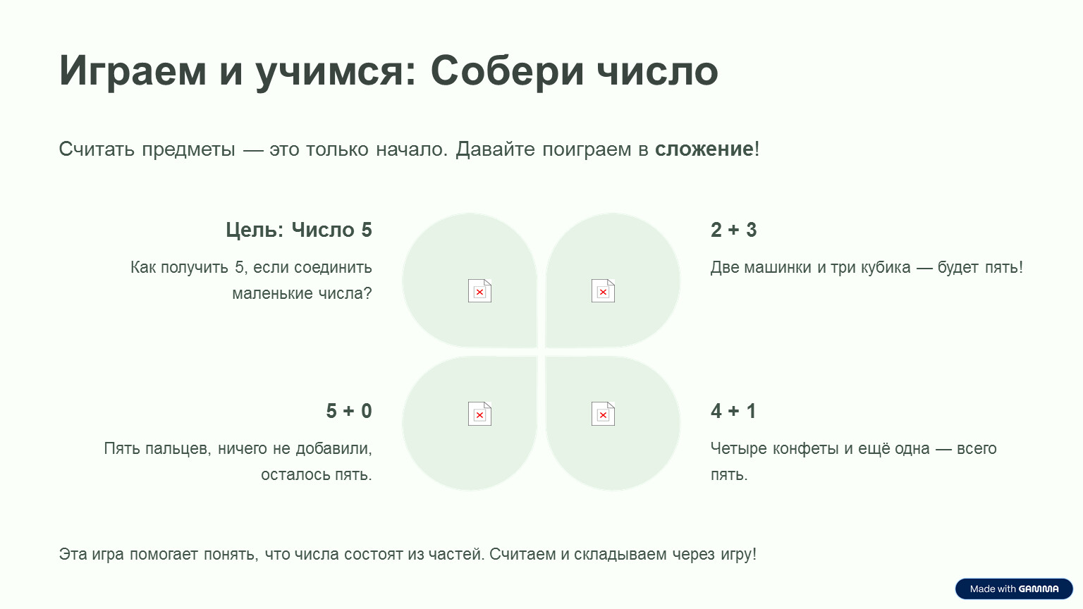 Эта игра помогает понять, что числа состоят из частей. Считаем и складываем через игру!