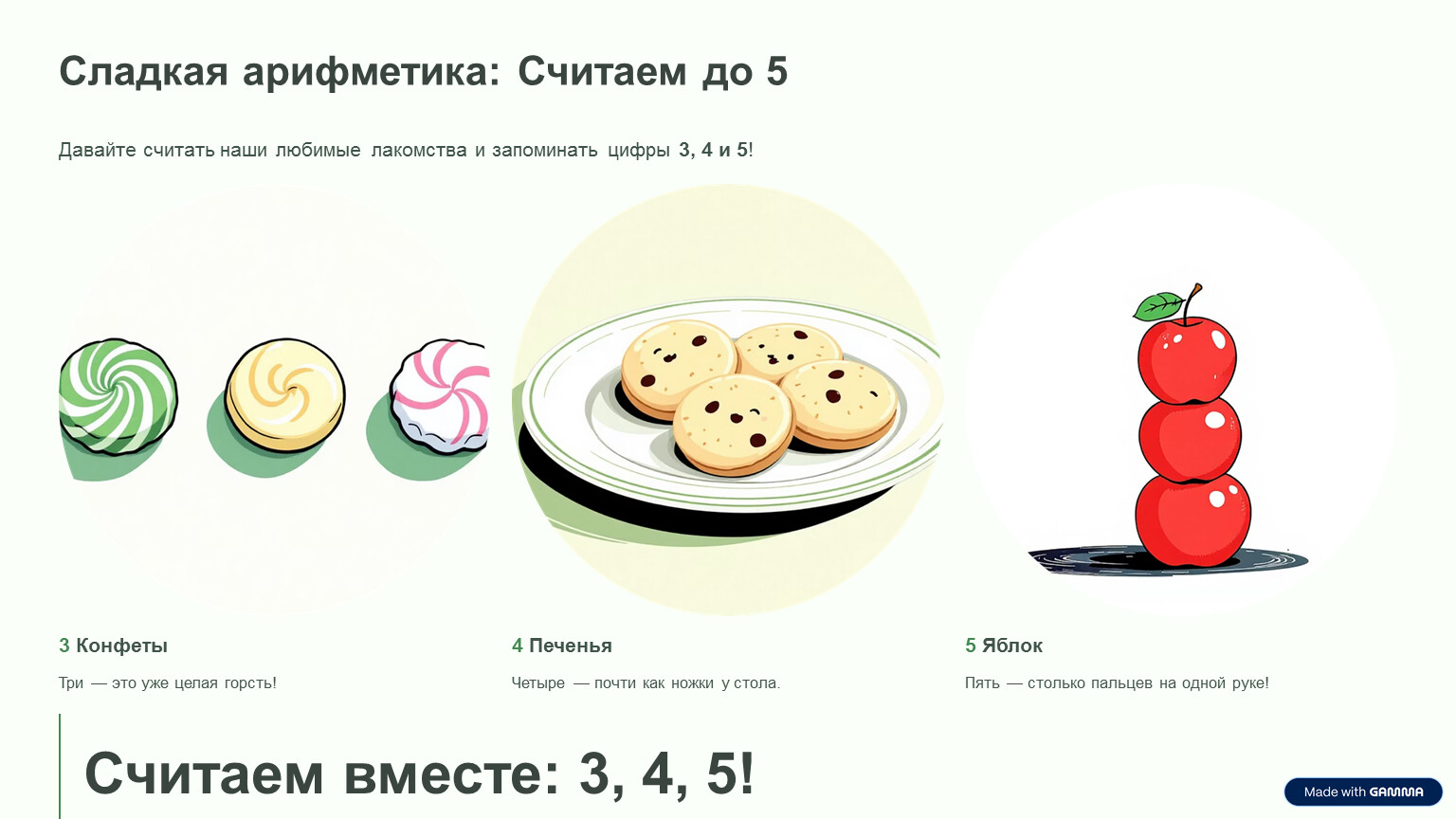 Давайте считать наши любимые лакомства и запоминать цифры 3, 4 и 5!