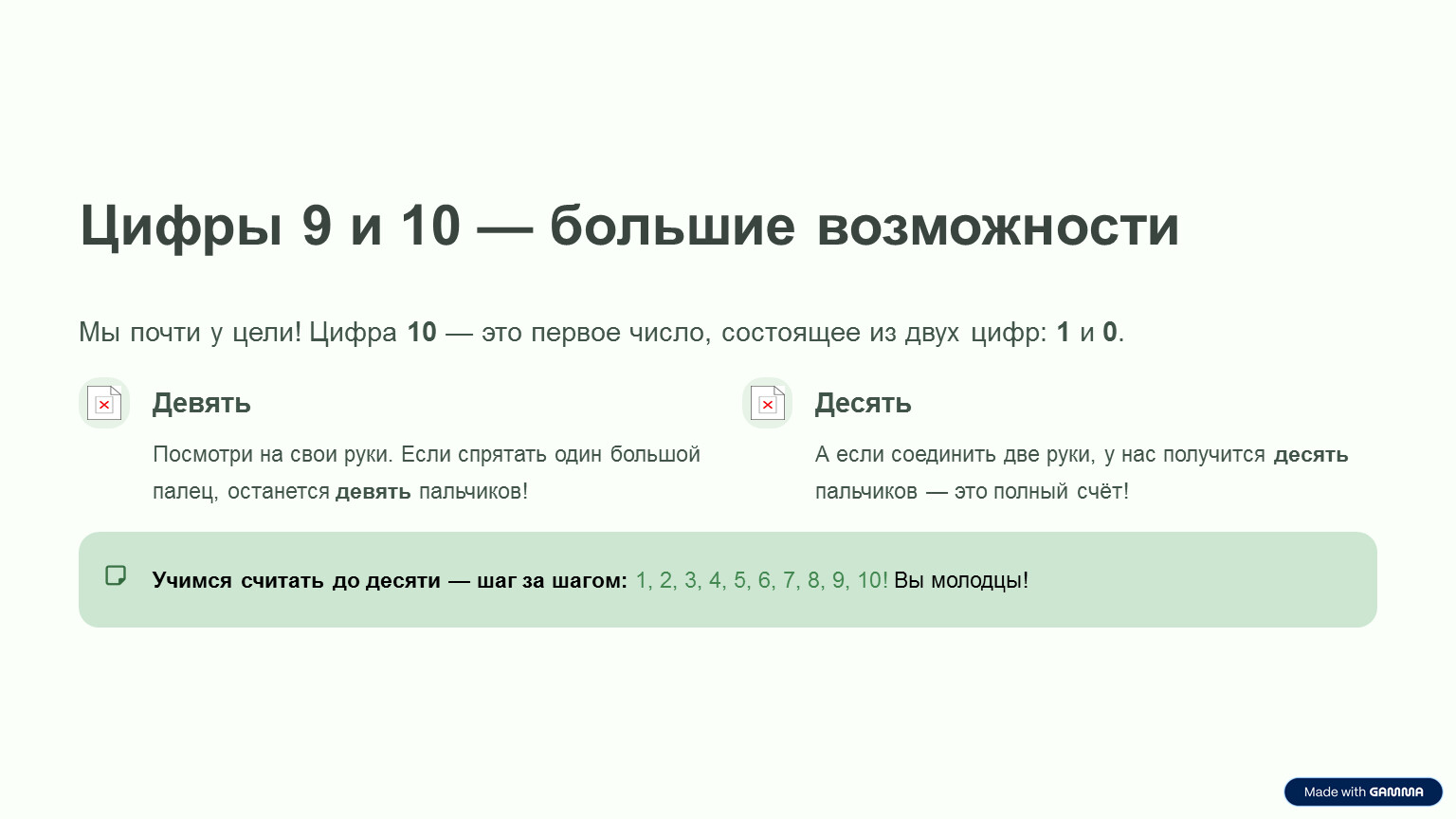 Мы почти у цели! Цифра 10 — это первое число, состоящее из двух цифр: 1 и 0.