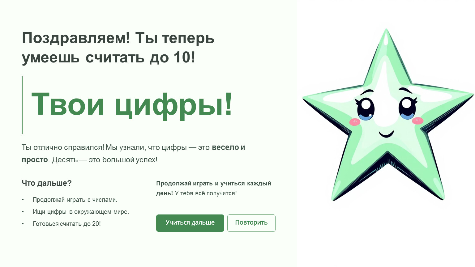 Добро пожаловать в увлекательный мир чисел! Мы начнём наше приключение с самых простых и важных цифр — от 1 до 10. Готовы?