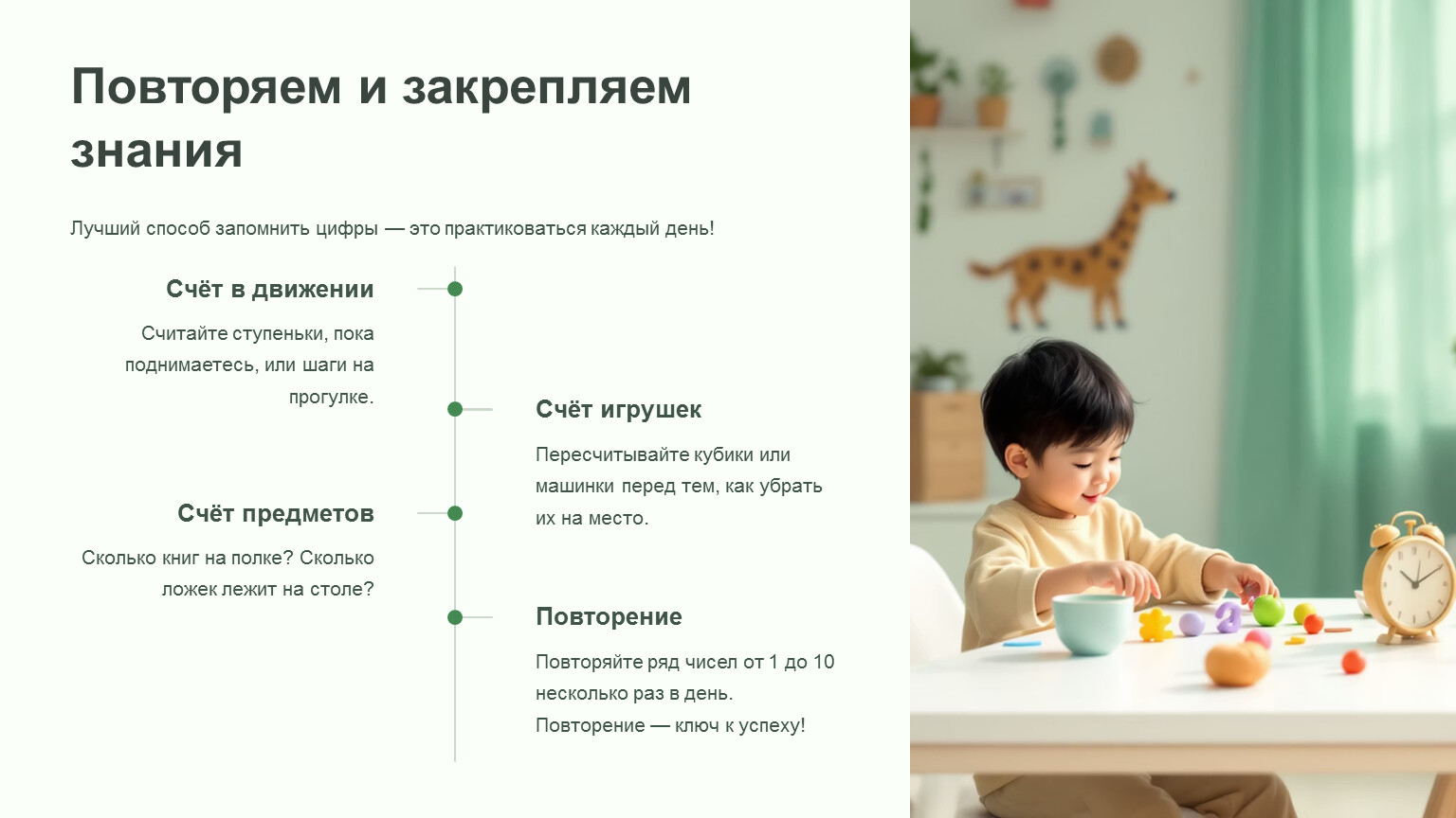 Повторяйте ряд чисел от 1 до 10 несколько раз в день. Повторение — ключ к успеху!