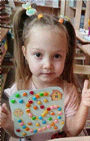 Выкладываются из пуговиц узоры, буквы, рисунки (по образцу, по контуру, произвольно)