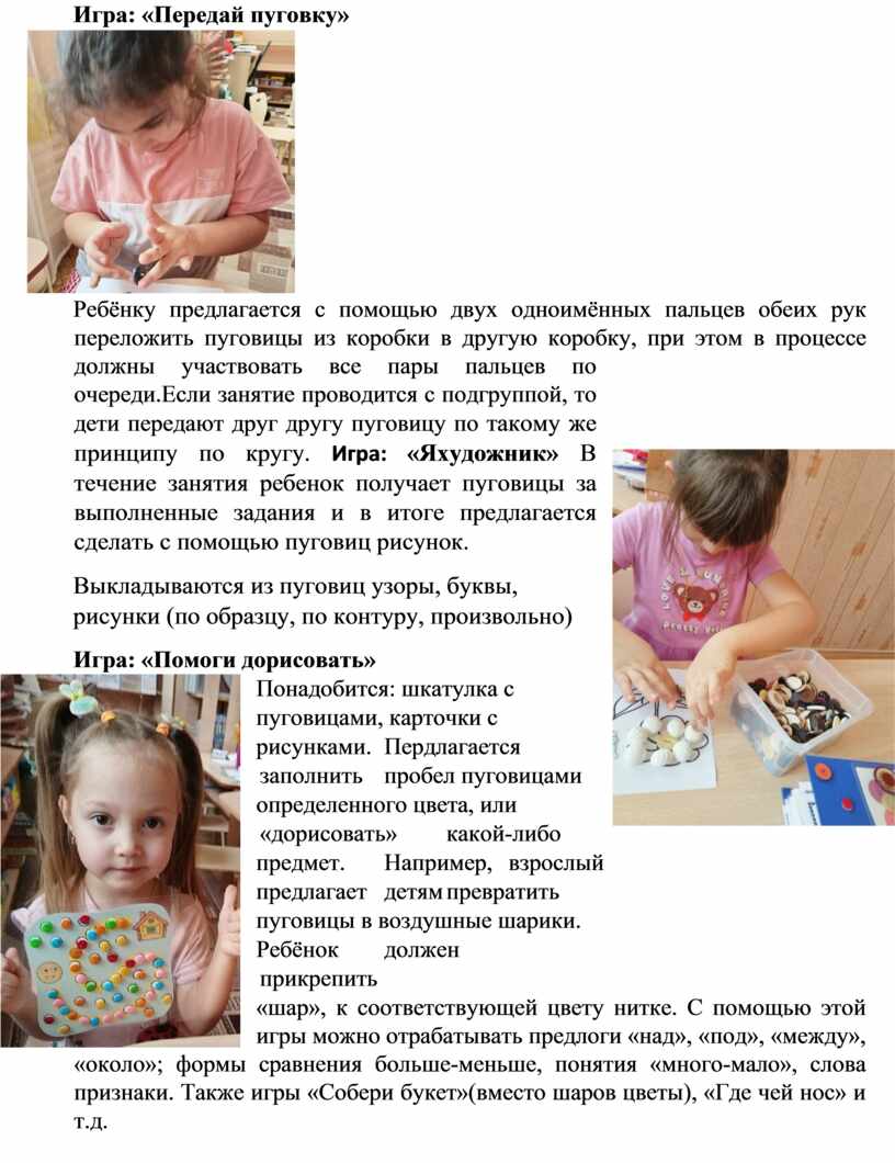 Цикл игр с пуговицами из шкатулки.