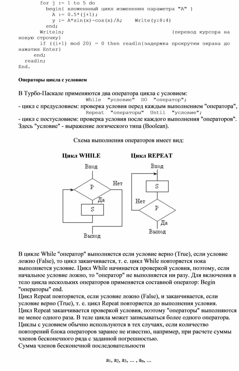 Цикл Repeat заканчивается проверкой условия, поэтому "операторы" выполняются не менее одного раза. В теле цикла может записываться более одного оператора.
