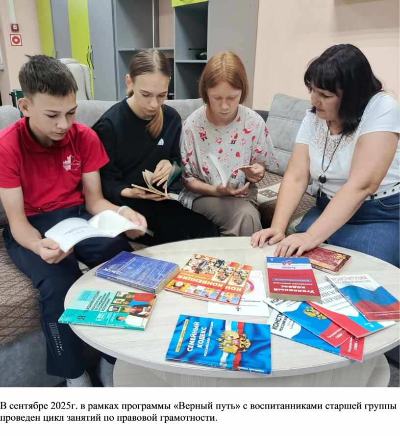В сентябре 2025г. в рамках программы «Верный путь» с воспитанниками старшей группы проведен цикл занятий по правовой грамотности.