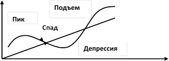 Экономический цикл – промежуток времени между двумя одинаковыми состояниями экономики. Выделяют четыре фазы цикла: пик (экономический бум), спад (рецессия), депрессия, подъем (экспансия).