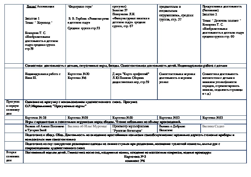Тема недели: В гостях у богатырей. Былины о богатырях.документ в формате WORD