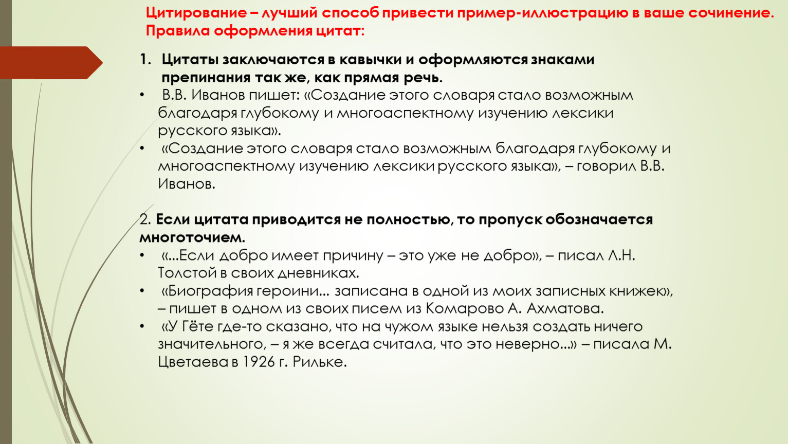 Цитирование – лучший способ привести пример-иллюстрацию в ваше сочинение.